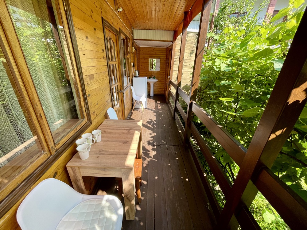 Деревянный коттедж на 4 человек. В коттедже 2 комнаты, в каждой Тв, сплит-система. В самом коттедже : раздельный туалет и душ, фен, холодильник, электрочайник, своя беседка. Сдается под ключ.