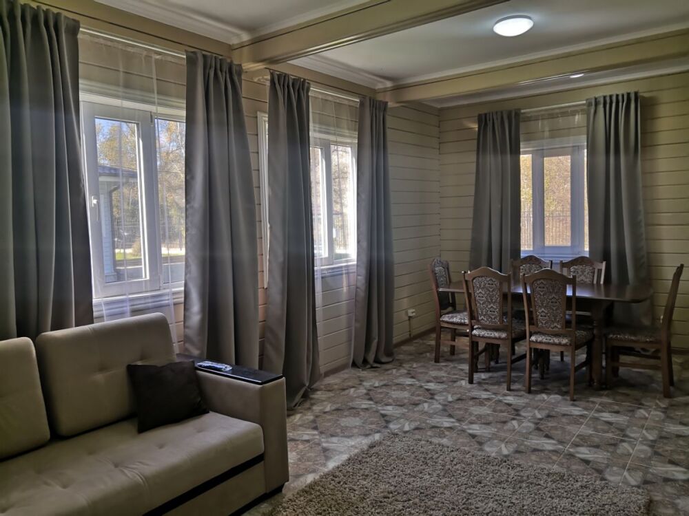 Три спальни, в гостиной раздвижной диван (8 спальных мест), кухня, гостиная, туалет, душ (на 1 этаже).