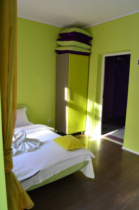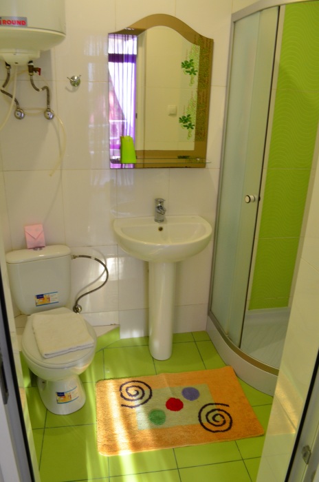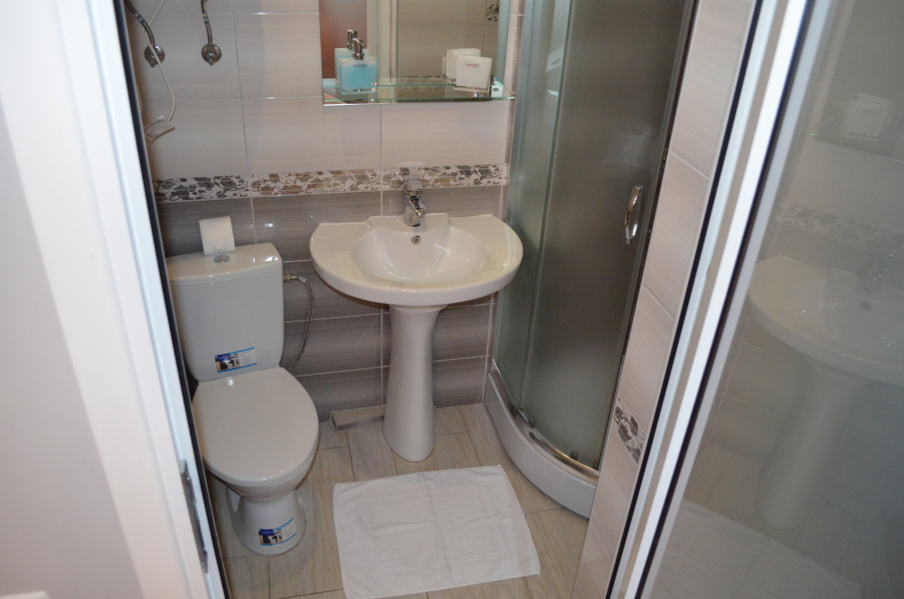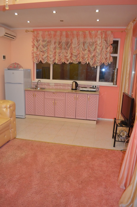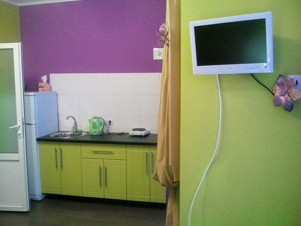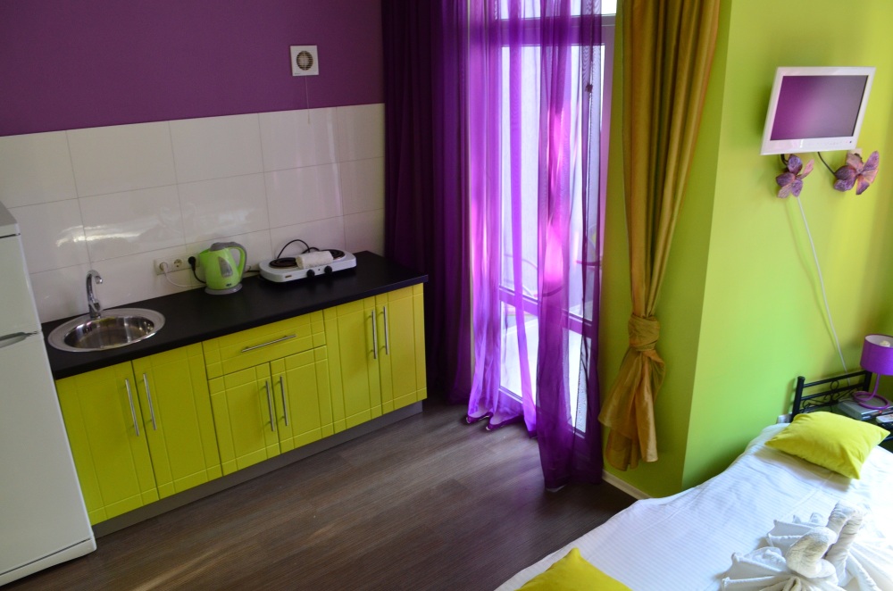 В каждом номере есть небольшая кухня, полноценный холодильник, электрическая плита, чайник, посуда.