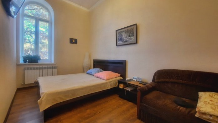 1 двуспальная кровать, 1 диван-кровать, детская кроватка (по запросу)