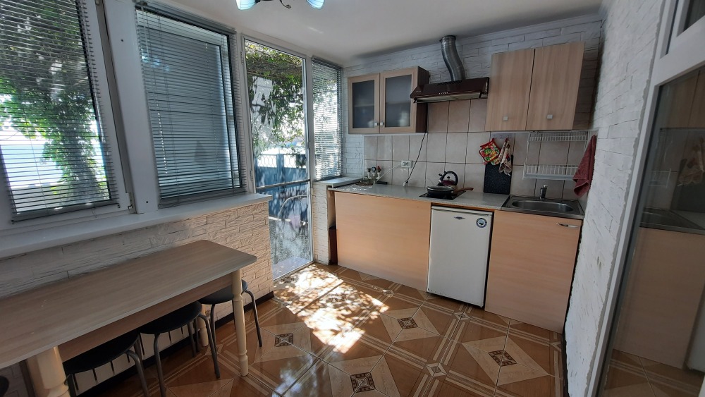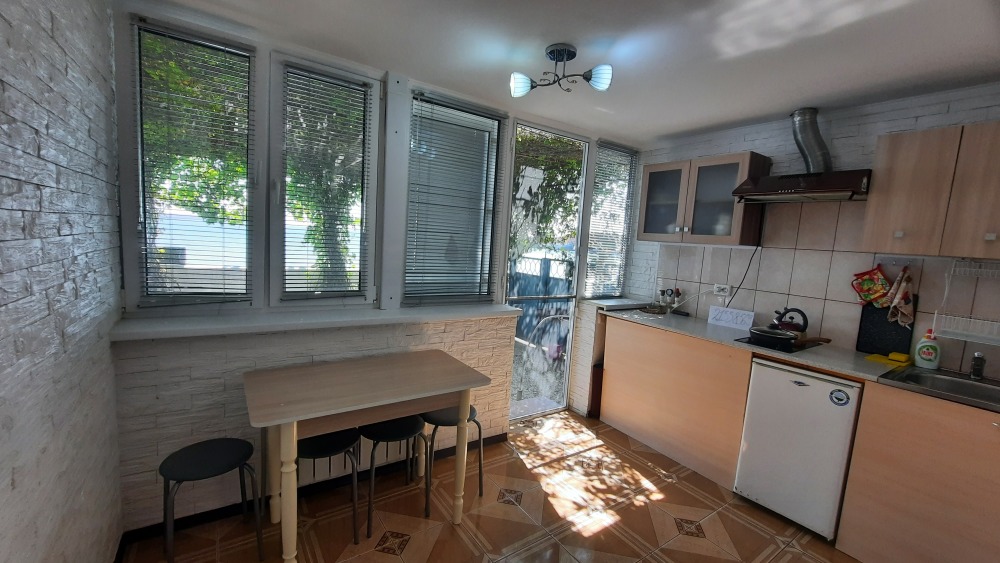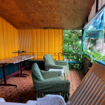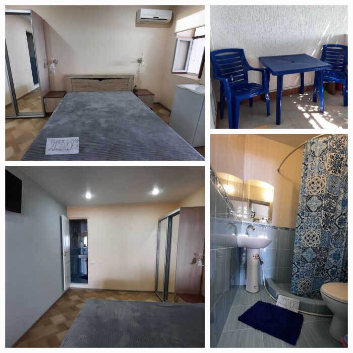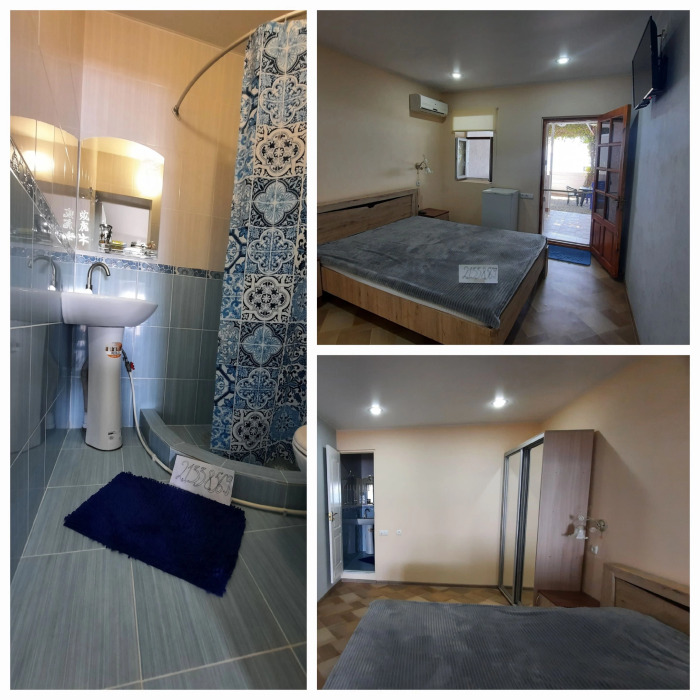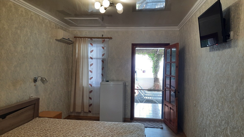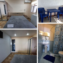 3-х комнатный номер оборудован отдельной кухней, холодильником, телевизором, Wi-Fi, санузлом, стиральной машиной, бойлером, а также собственной террасой с выходом на пляж.