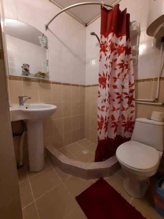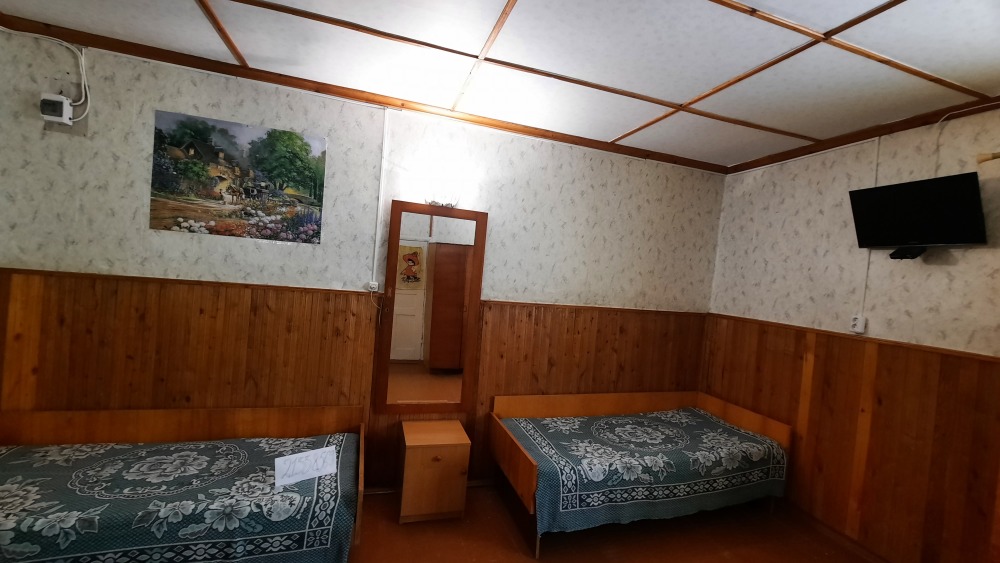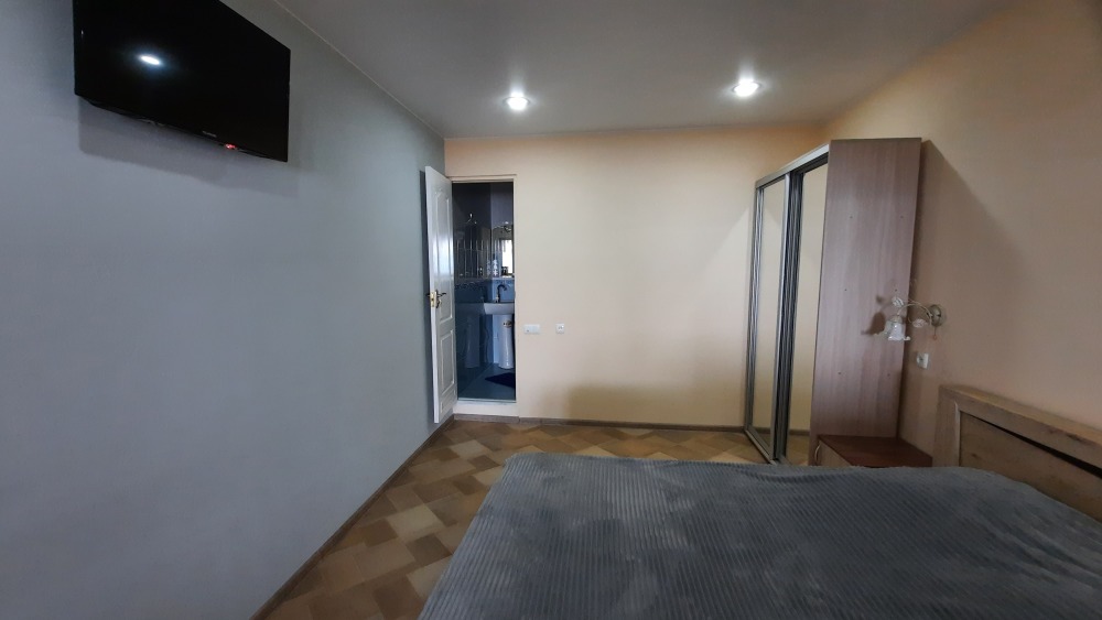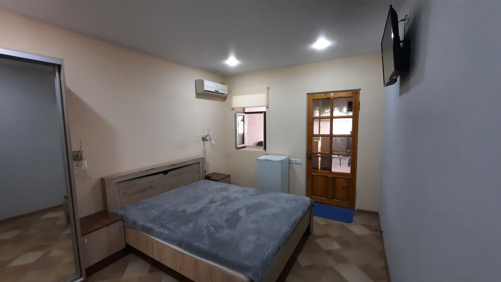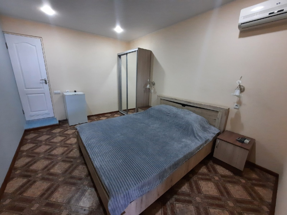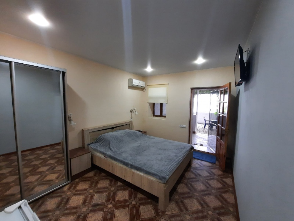В номере: большая двуспальная кровать с прикроватными тумбами, шкаф-купе, сплит-система, телевизор, холодильник, ванная комната(бойлер), Wi-Fi.