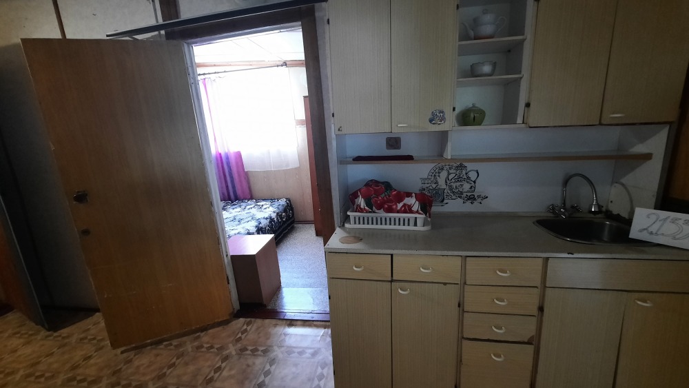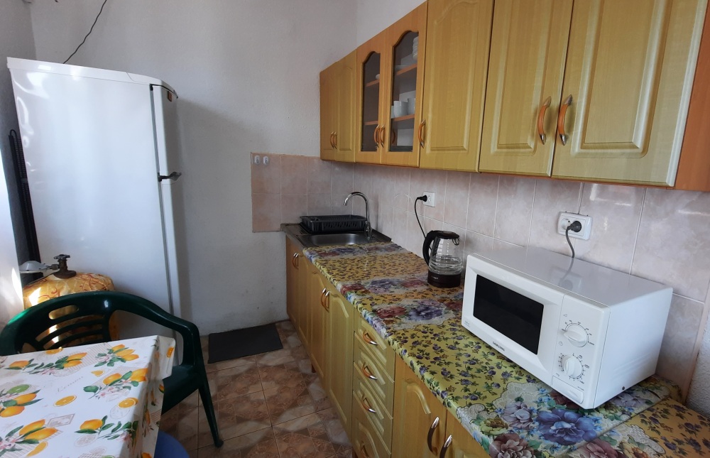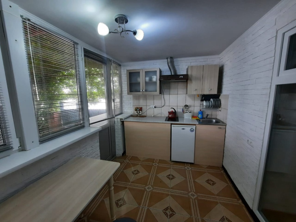 Номер с отдельной кухней. Кухня оборудована всей необходимой мебелью и посудой, а также холодильником. Микроволная печь и стиральная машина находяться на общей кухне.