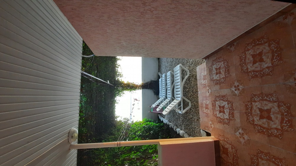 Во дворе общий стол, мангал и шезлонги.