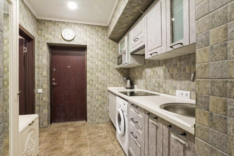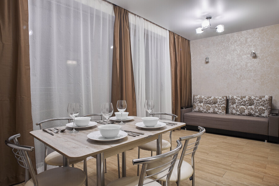 На территории комплекса имеется подземная охраняемая парковка (300 руб./сутки). На первом этаже комплекса расположено кафе, в котором можно заказать доставку в апартаменты, так же в шаговой доступности есть ресторан.