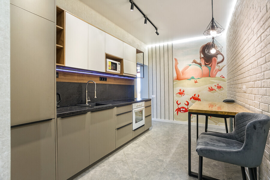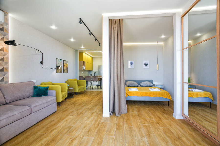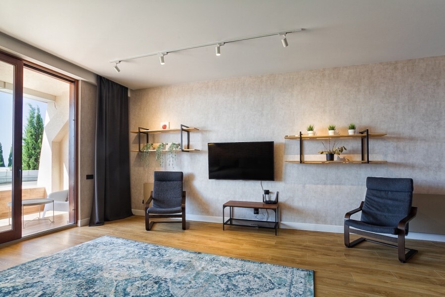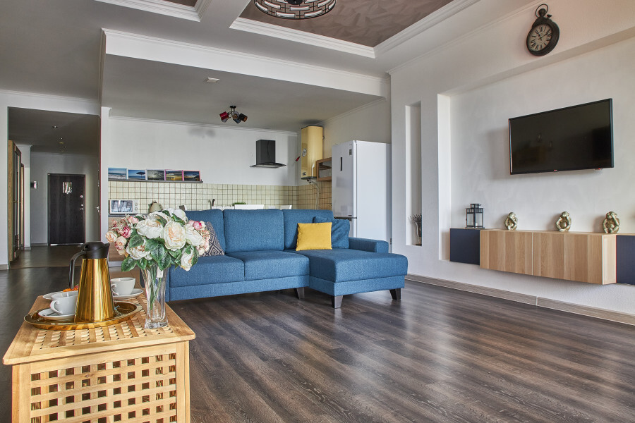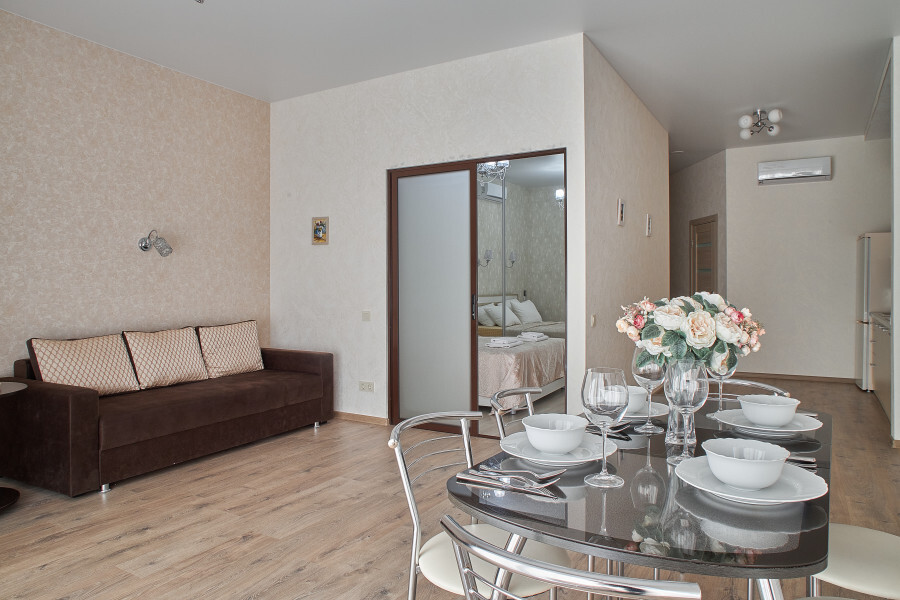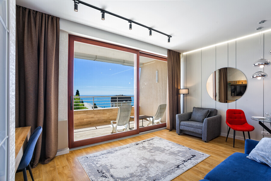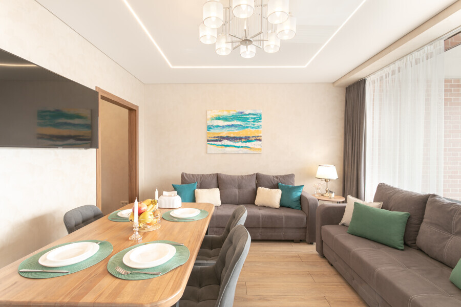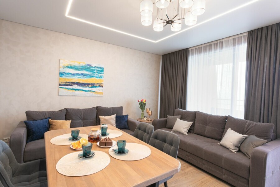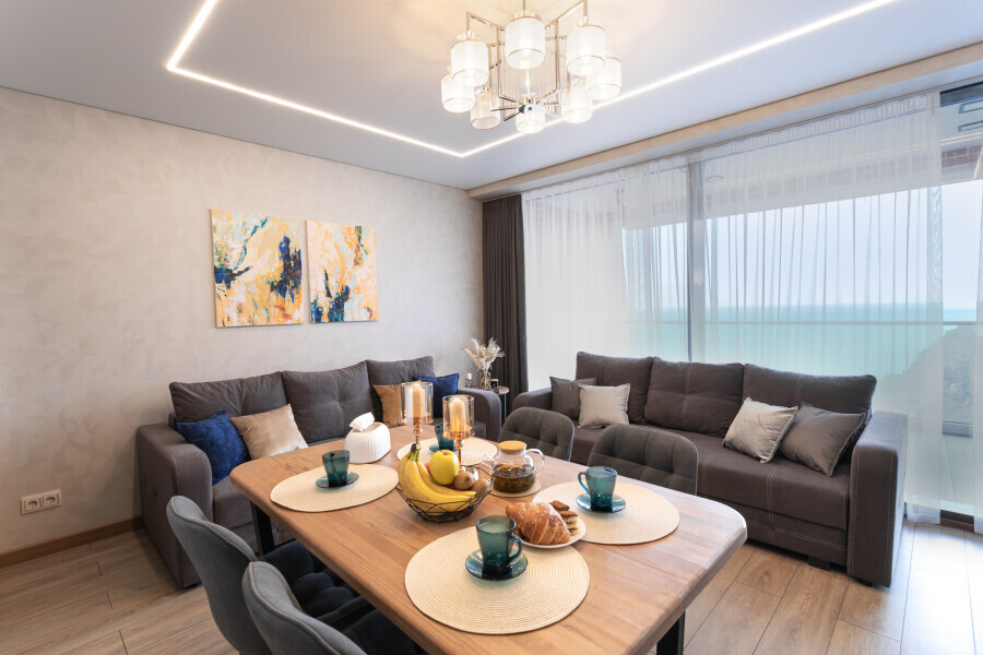 Для проживающих в наших апартаментах занятия в тренажерном зале на территории ЖК предоставляются бесплатно. В 15-20 минутах ходьбы от нашего комплекса находится городской галечный пляж, на пляже за дополнительную плату можно арендовать зонтики и шезлонги.