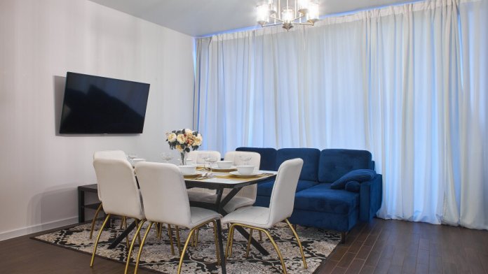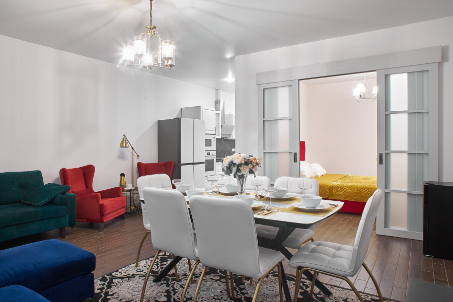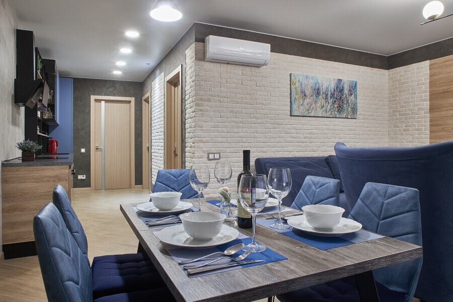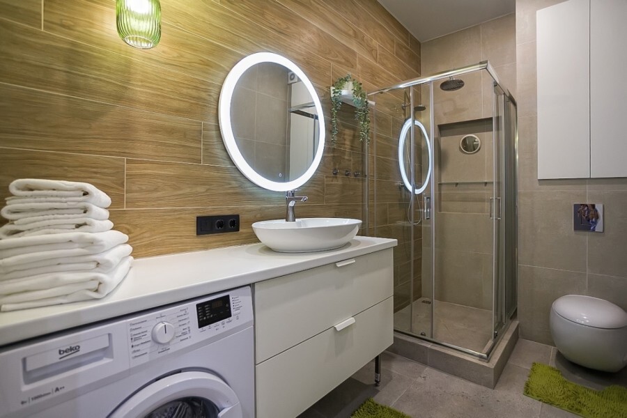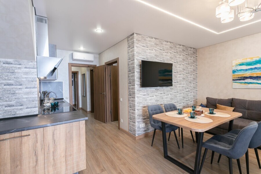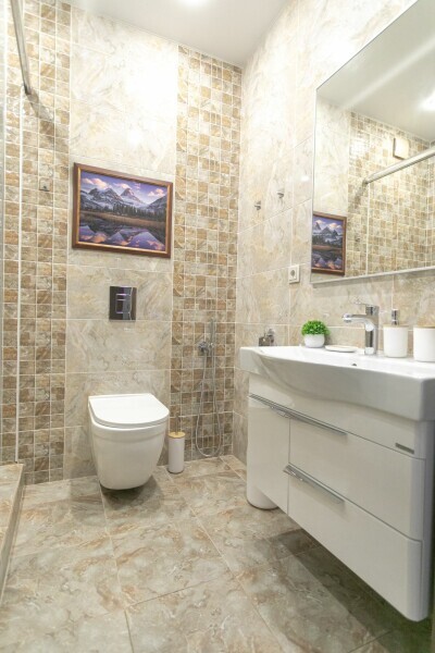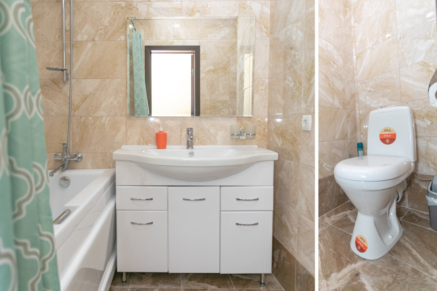 В квартире есть все необходимое для комфортного проживания. В каждой комнате свой отдельный санузел.