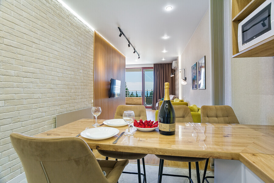 Предлагаем Вам для отдыха двухкомнатные видовые апартаменты в ЖК Фамилия в пгт Гурзуф. Апартаменты отлично подойдут как для семейного отдыха, так и для путешественников, любящих спокойный отдых в комфортных условиях.