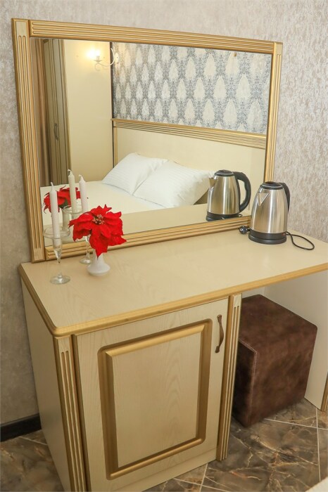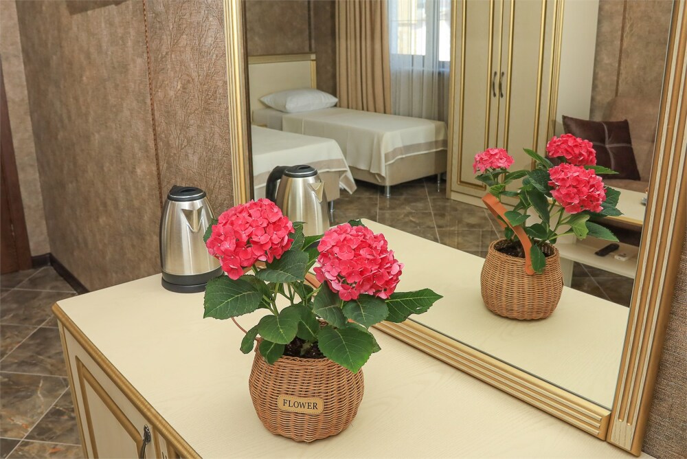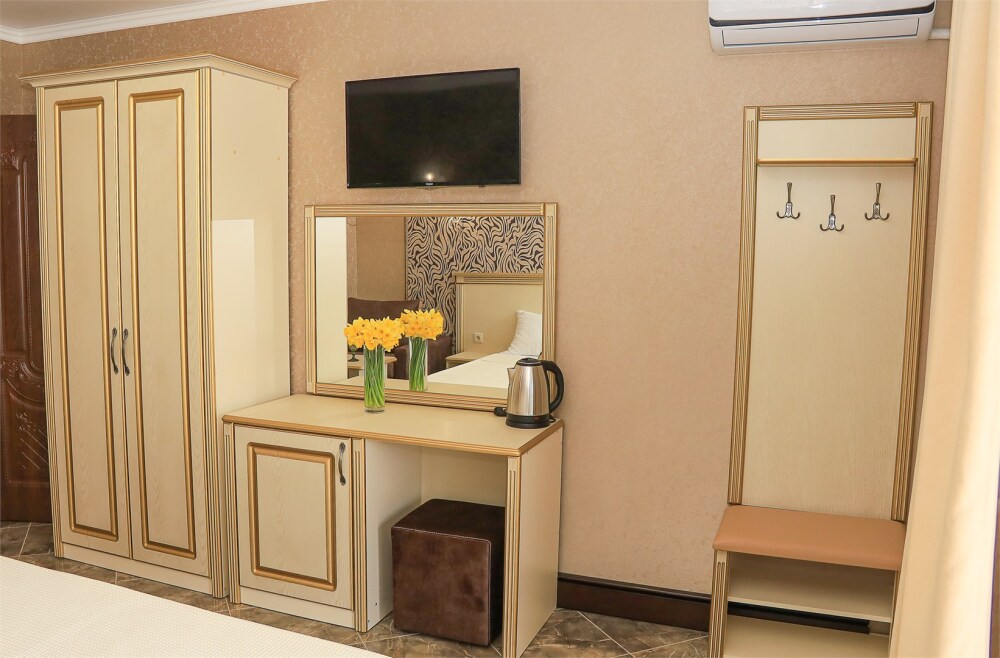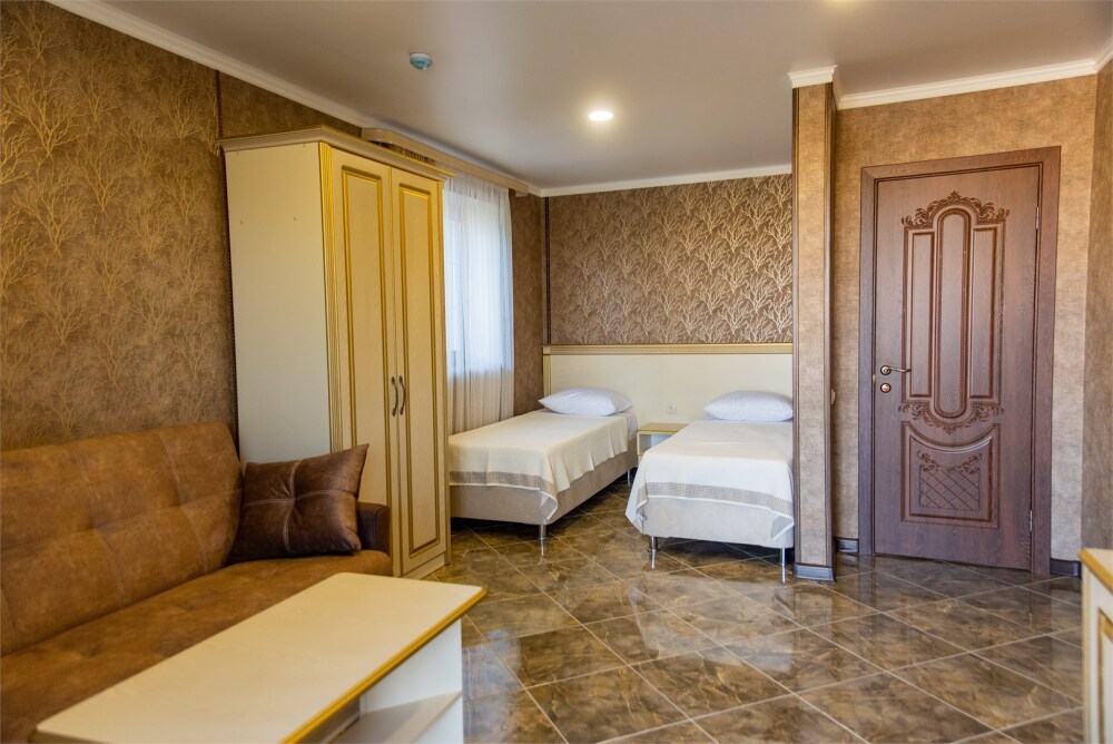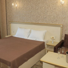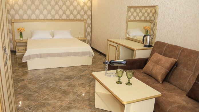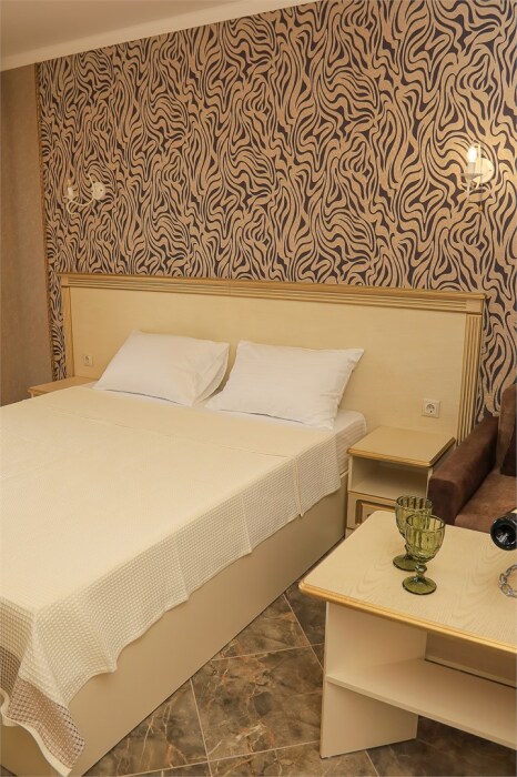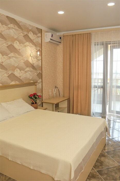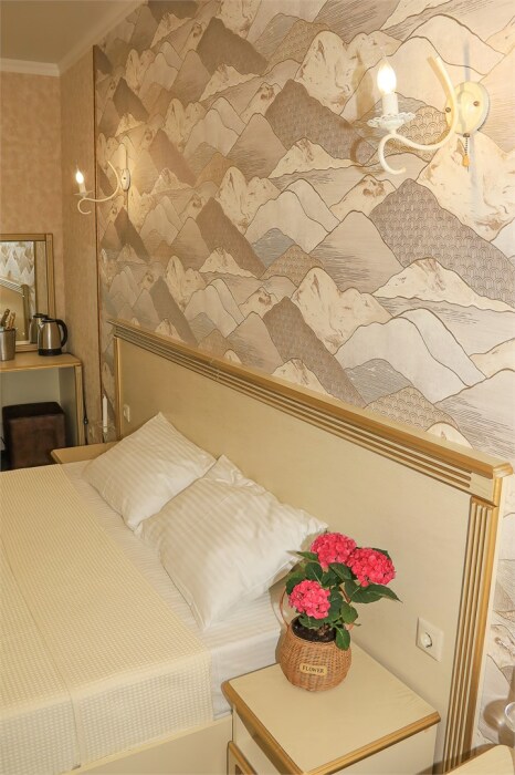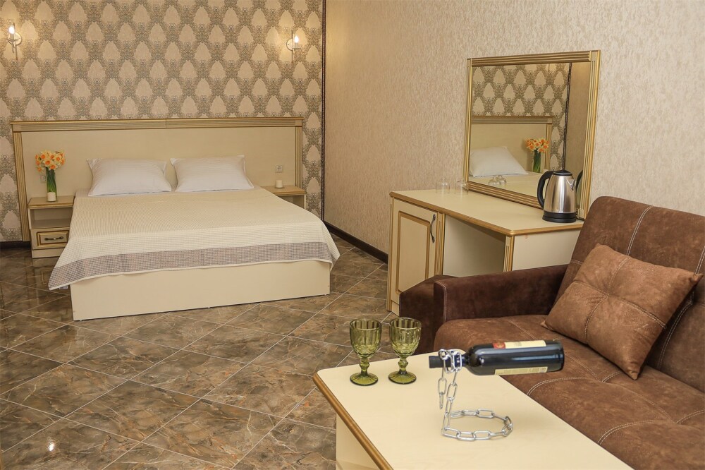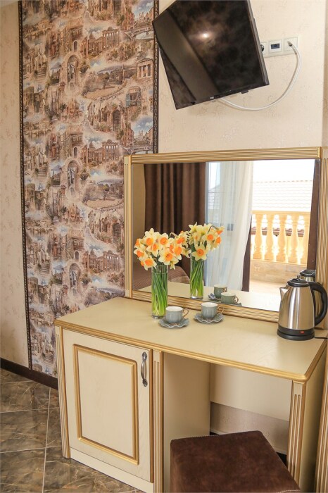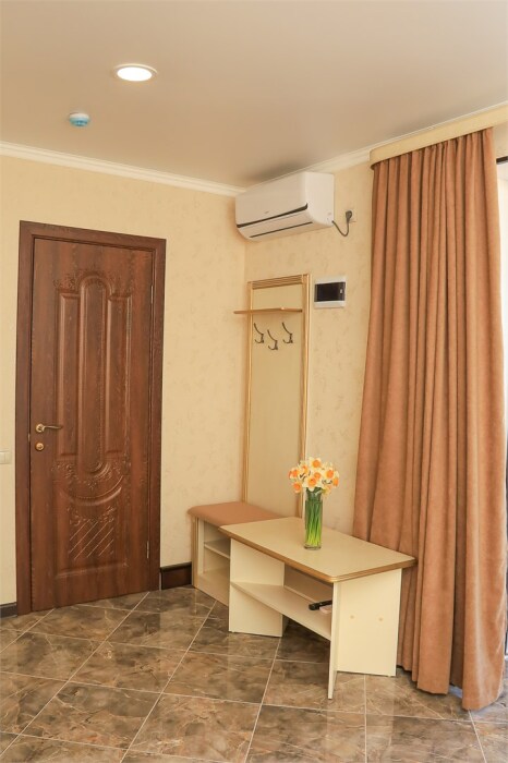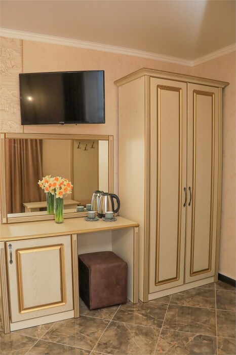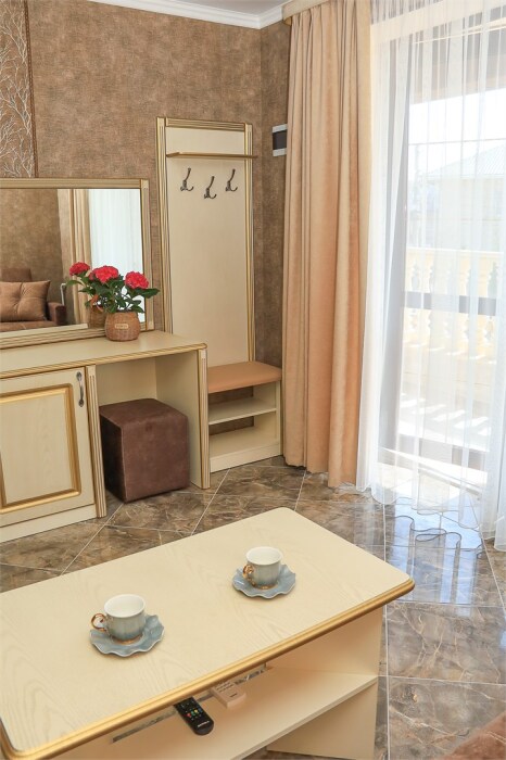 Уютный номер для 1–2 человек, площадью от 20 до 24 м². В комнате: большая кровать, рабочая зона, телевизор, чайник, шкаф. В ванной — душ, фен, туалет, полотенца. Есть кондиционер, Wi-Fi. На этаже — утюг и гладильная доска. Стойка регистрации работает круглосуточно. Уборка — раз в 3 дня, смена белья — раз в 5 дней. Завтрак с 8:00 до 10:00 (дополнительно). В ресторане действует дневное меню. Бесплатно: прачечная, хранение багажа, парковка. Сувениры из Крыма на территории. Дети до 3 лет — бесплатно.
