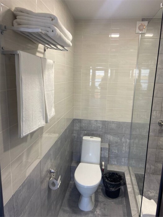 Уютный номер для 2–4 человек. В номере: две односпальные кровати, рабочая зона, телевизор, чайник, шкаф. В ванной — душ, фен, туалет, полотенца. Есть кондиционер, Wi‑Fi. Утюг и гладильная доска — на этаже.
