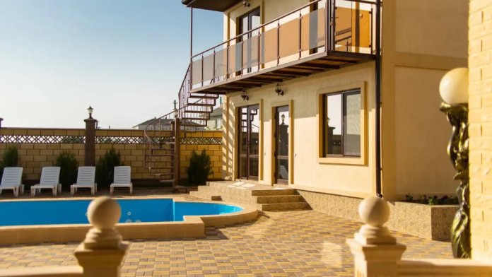 Парковка и гостевой дом находится под круглосуточным видеонаблюдением. На территории имеется собственный открытый бассейн с подогревом, рядом расположен контактный бар, широкая терраса для отдыха и принятия загара, игровая площадка для детей, кафе, лаунж бар с панорамным видом, кальянная.