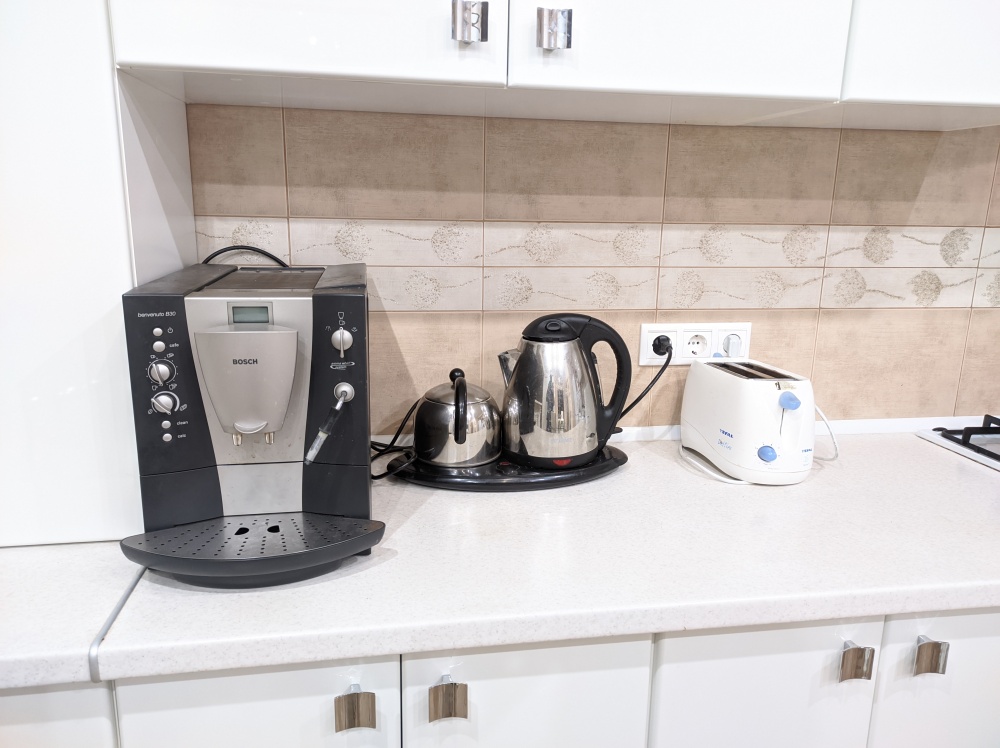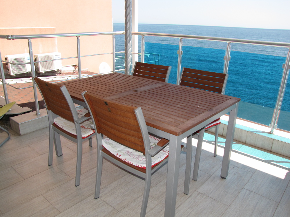 В апартаментах все от кофемашины до спортивного велосипеда , своя терраса с обеденным столом с видом на море, 3 кондиционера, 2 санузла, эл. плита, 2 холодильника, утюг, кухонная посуда, постельное белье, набор полотенец.