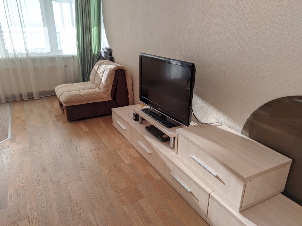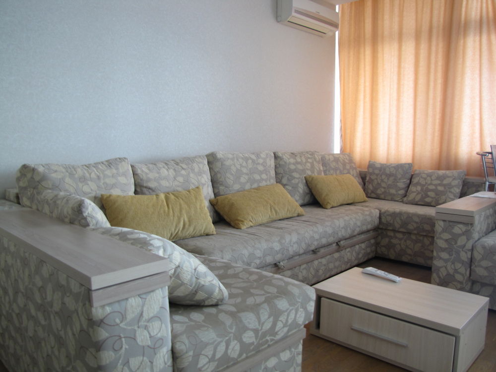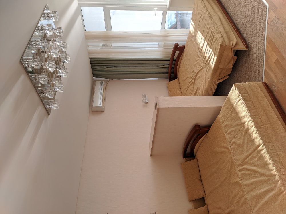 В номере имеется спальня на 5 ( 2+2+1) человек и в зале огромный диван на 4 человека.