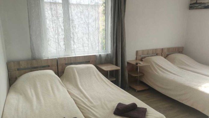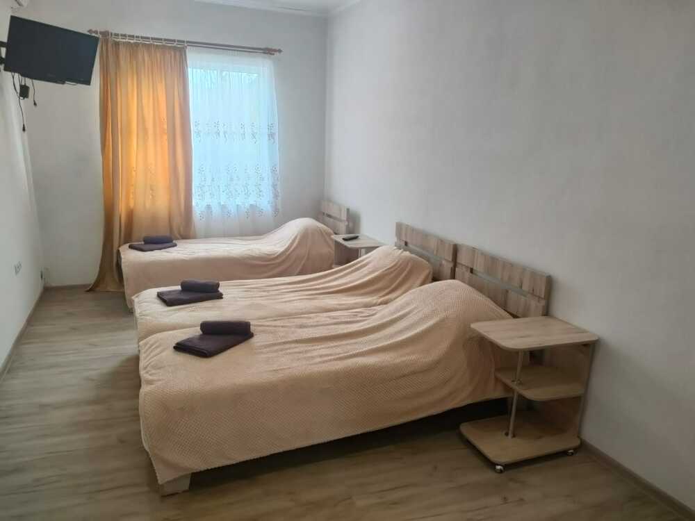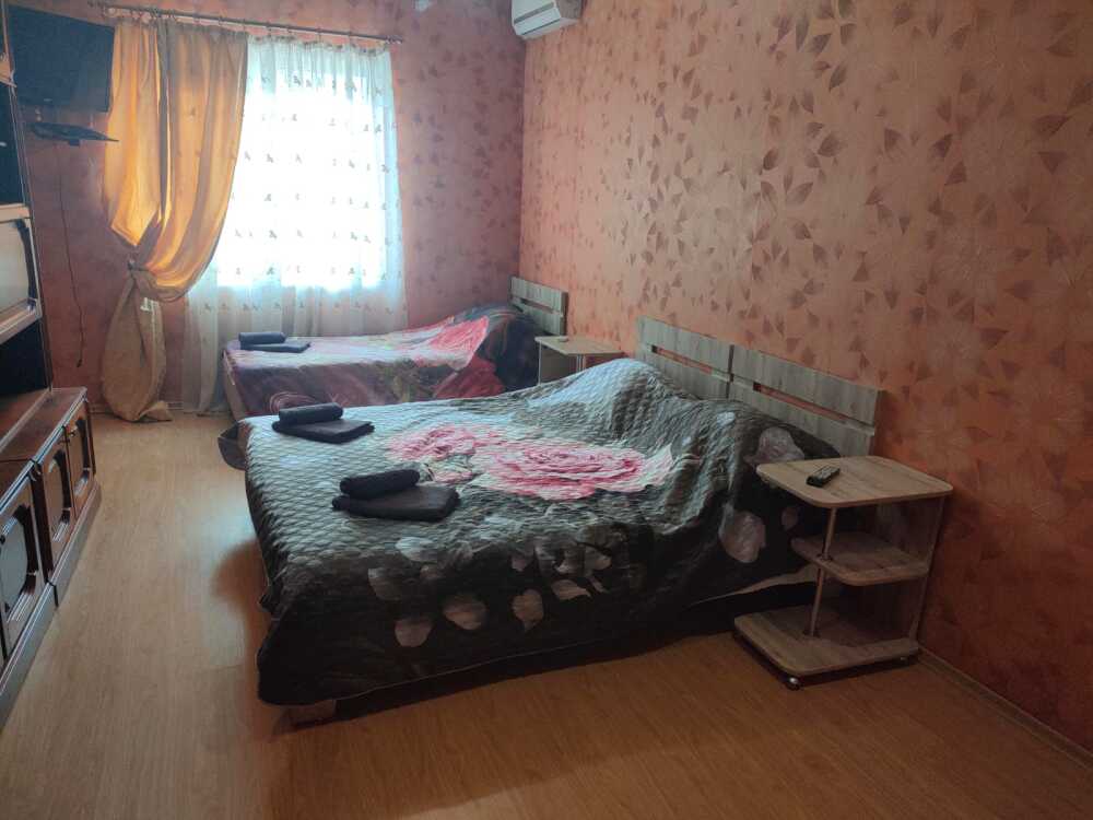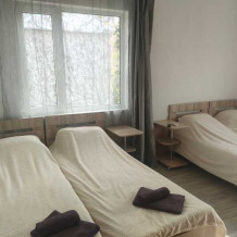 В номере: сплит-система, спутниковое TV, Wi-Fi, холодильник, микроволновая печь, электрический чайник, набор столовых приборов, набор полотенец, постельное белье, сушилка для белья, кровати, прикроватные столики, шкаф,стол.