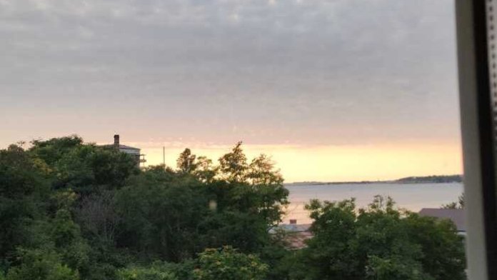 Из окон гостевого дома виден причал «Аполлоновка», вдоль которого встают на рейд военные корабли в день парада в честь Военно-Морского флота 28 июля.