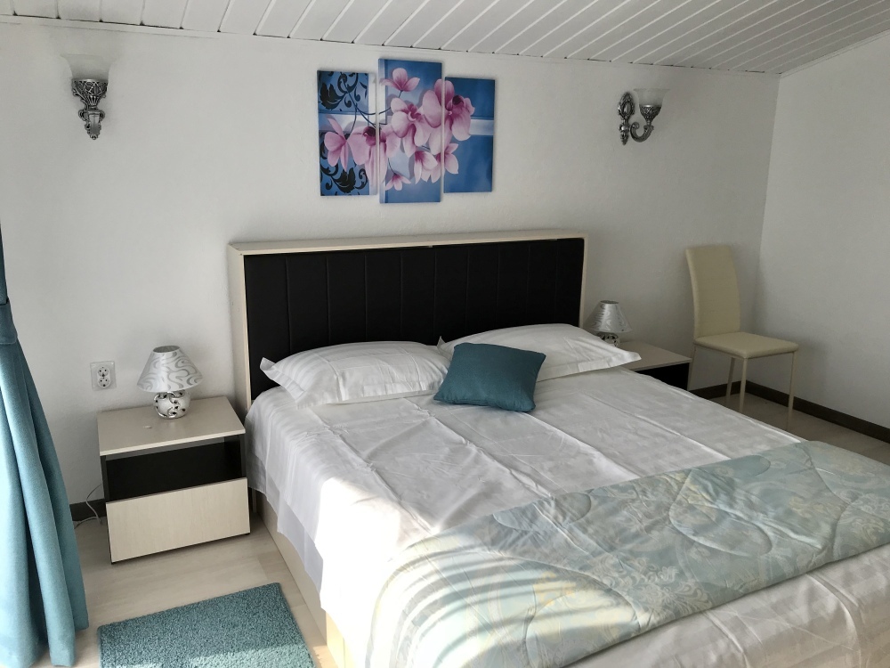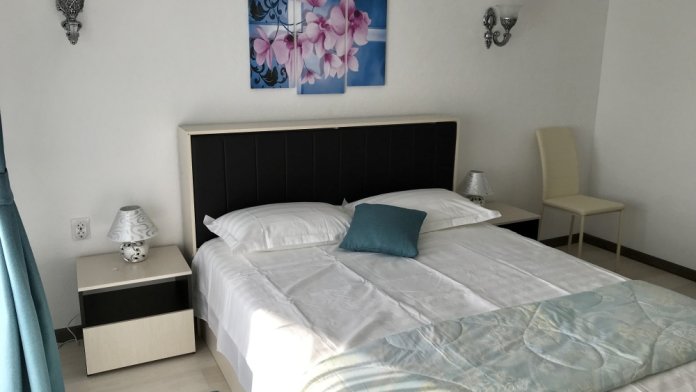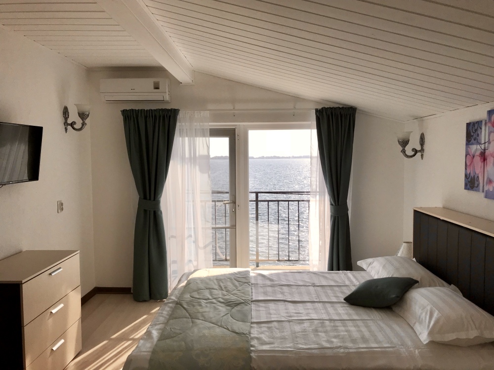 Самый шикарный и большой номер нашего отеля занимает целый этаж с отдельным входом в отдельном здании. Две большие раздельные комнаты, 2 балкона, 2 кондиционера, 2 ТВ с плоским экраном, 2 двуспальные кровати и диван кровать, полотенца, белое белье, холодильник, чайник, с/у.