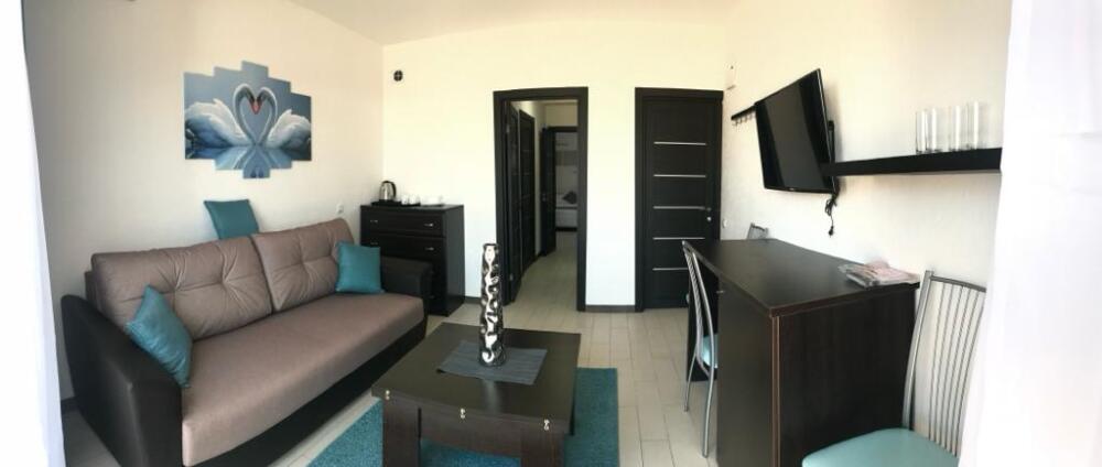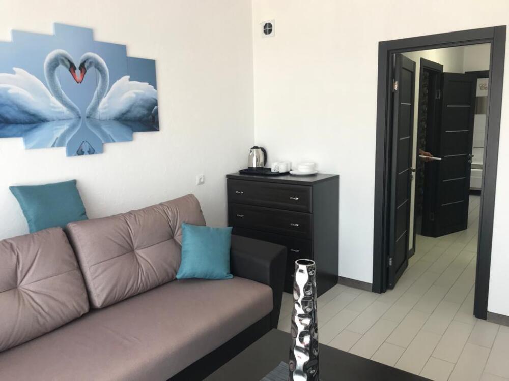 Двухкомнатный номер для 4 гостей(две изолированные комнаты) с двухспальной кроватью и диваном,балконом, кондиционером, электрическим чайником и холодильником, двумя телевизорами с плоским экраном.