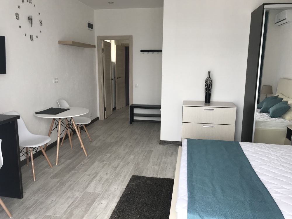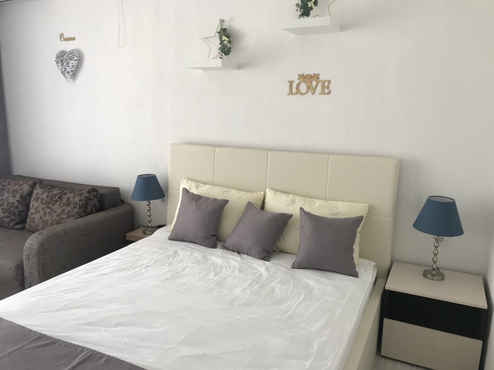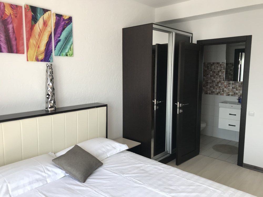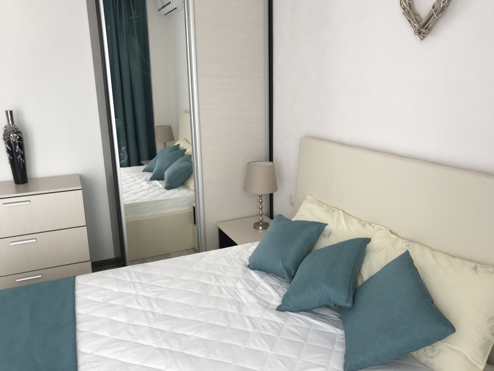 Двухкомнатный стильный люкс с кондиционерами в каждой комнате, ТВ, холодильник, чайник, белое бел е, полотенца, балкон.