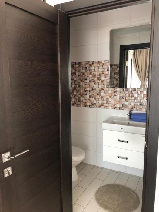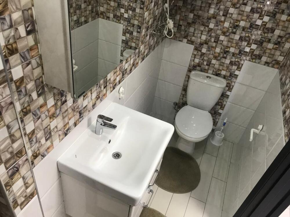 В ванной комнате:туалет, душ,полотенца,туалетная бумага.