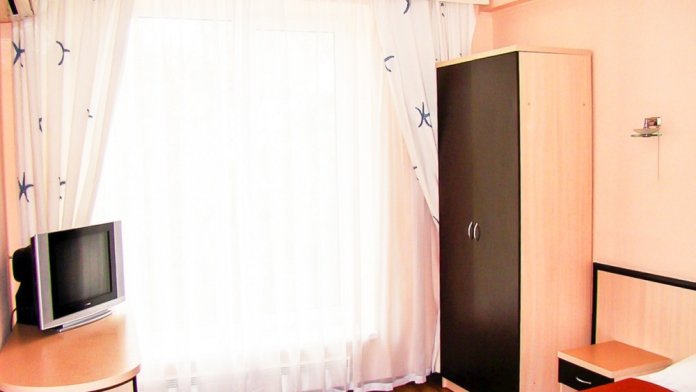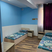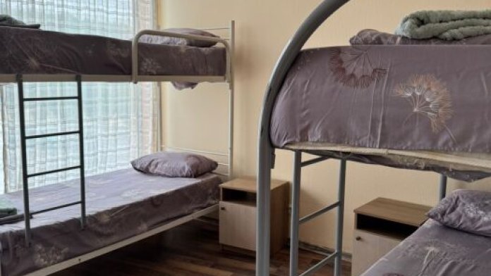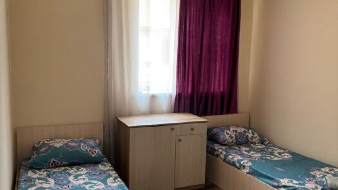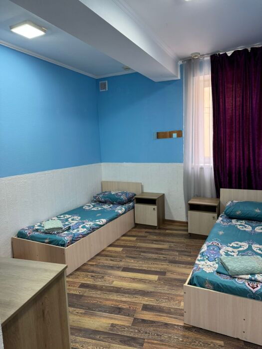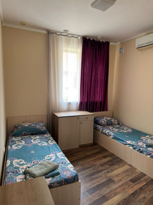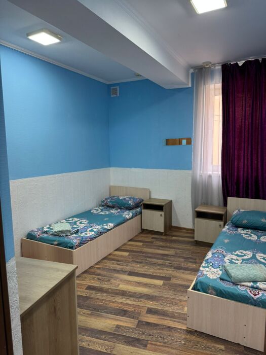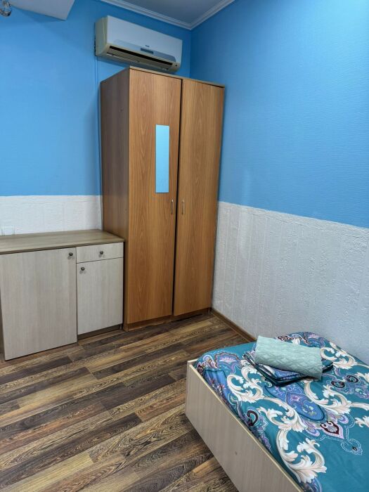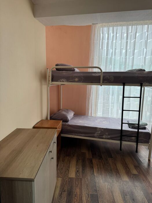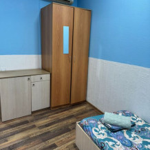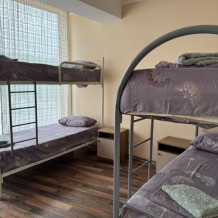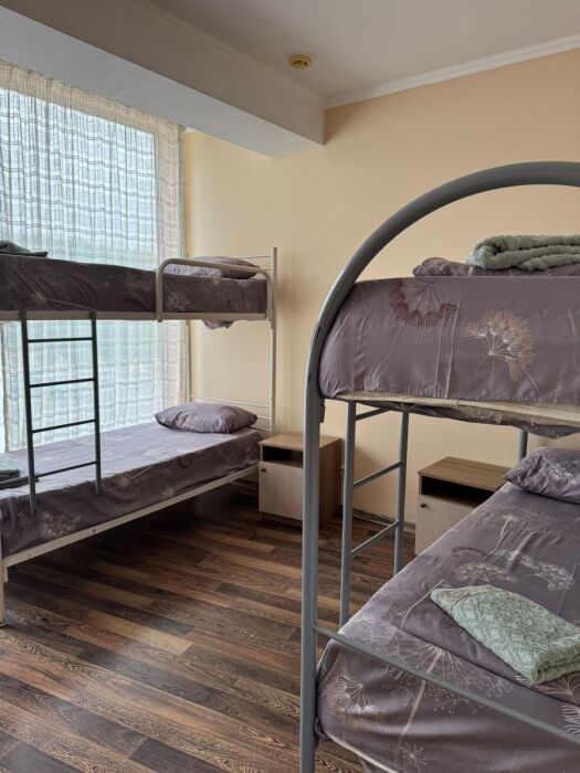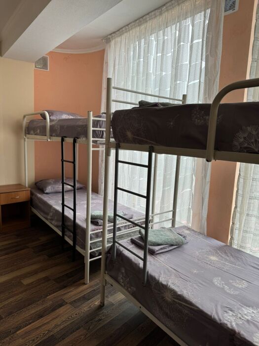 Шестиместный номер Эконом. В номере 3 двухъярусные кровати. Сплит-система, тумбочка, стул, вешалка для одежды. Общие удобства на этаже для 13 человек.