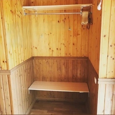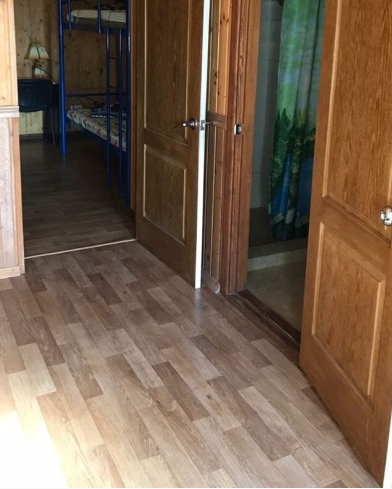 Отдельный 2-комнатный номер рассчитанный до 5 человек. В номере: утюг, гладильная доска. Горячая и холодная вода всегда есть. Отдельный вход, при выходе стоит сушилка для белья. Отделка натуральном дереве.