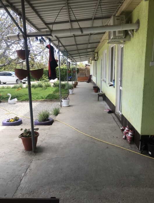 Уютный закрытый дворик с парковкой. Зона отдыха. Кухня общая на 2 номера: 2 раковины, стиральная машина, микроволновка, газовая плита, большой холодильник и вся необходимая посуда. Интернет, Wi-Fi на всей территории двора.