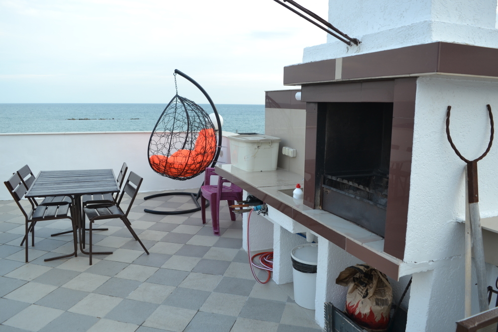 На пляже есть , крытые навесы, шезлонги, массаж, кафе. От нас начинается полоса пляжей в 5 км.