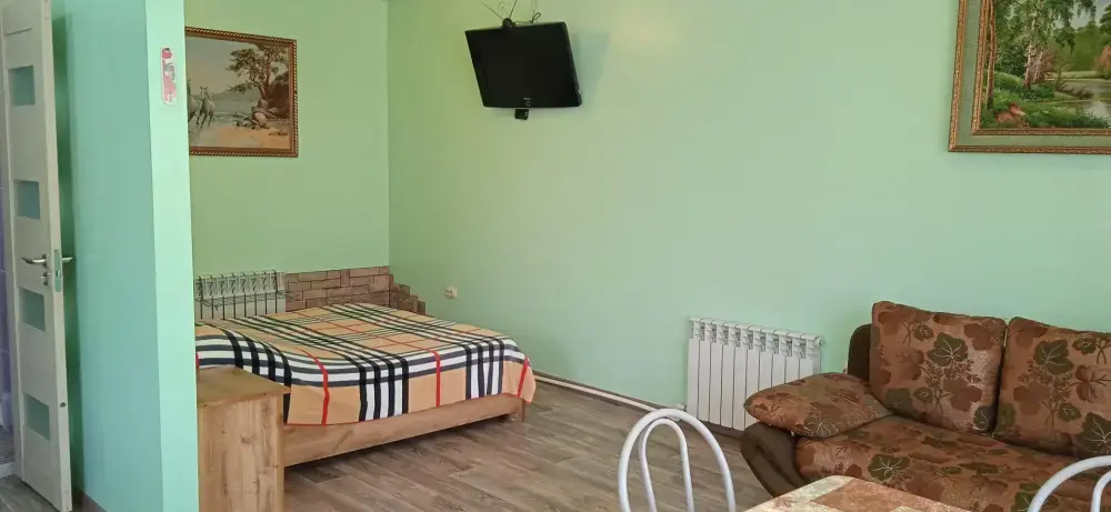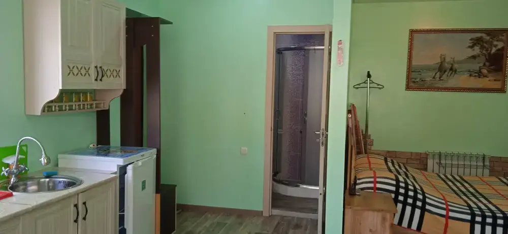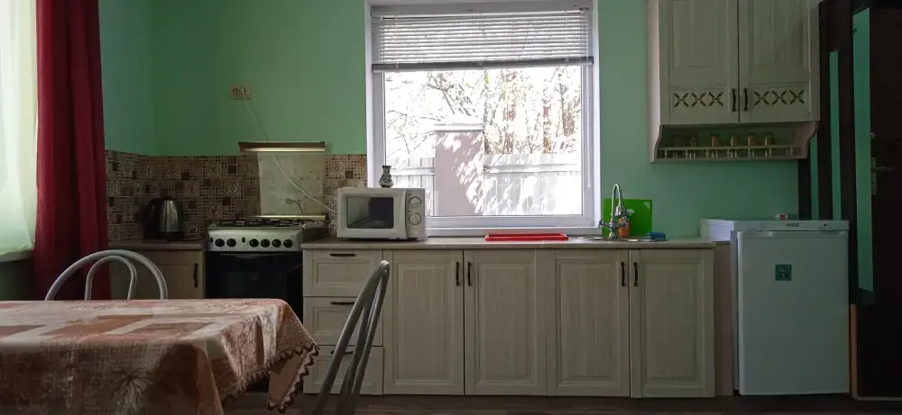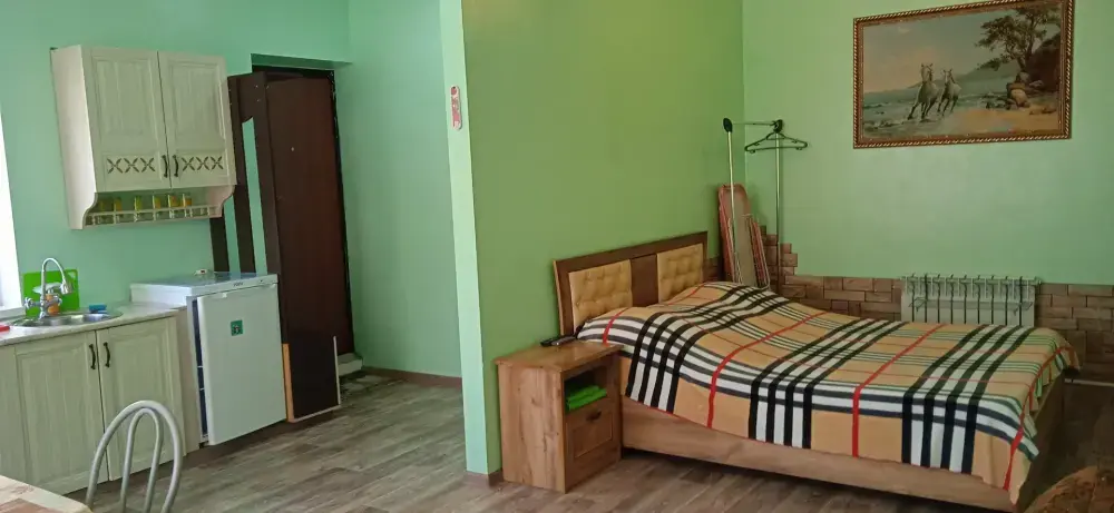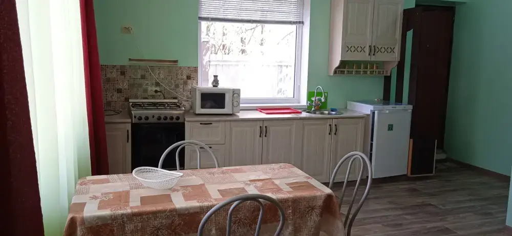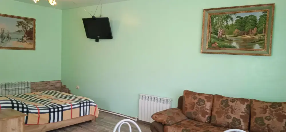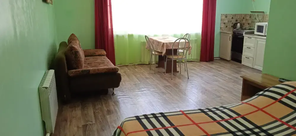 Оснащение: полотенца, постельное белье, сушилка для белья, вентилятор, утюг с гладильной доской, газовый водонагреватель, металлическая дверь, москитная сетка, гостиный уголок, обогреватель, линолеум, автономная система отопления.