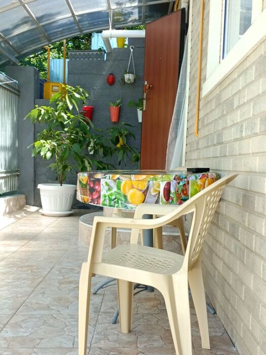 Оснащение двора: мебель на улице, принадлежности для барбекю.