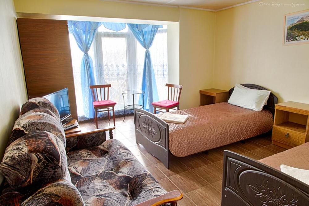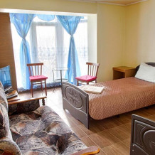 Удобства рассчитаны на 2 номера. Возможна установка дополнительно спального места.