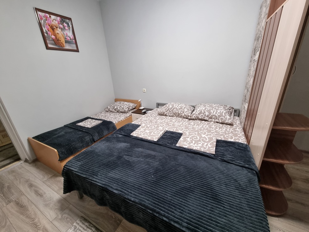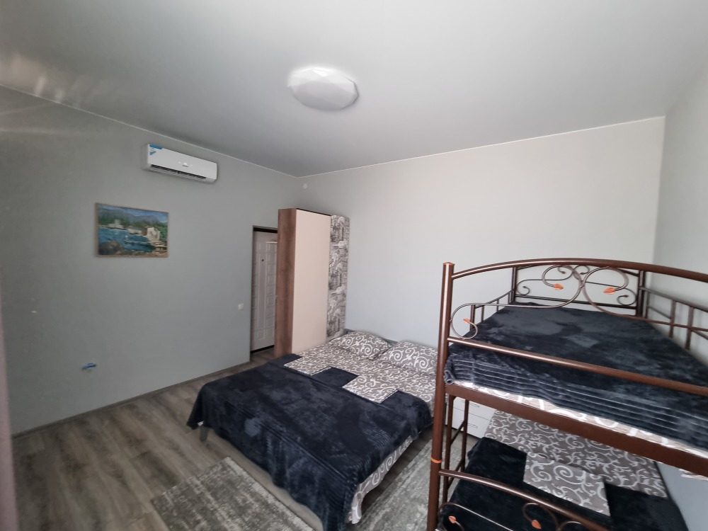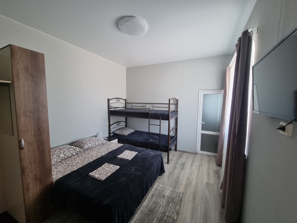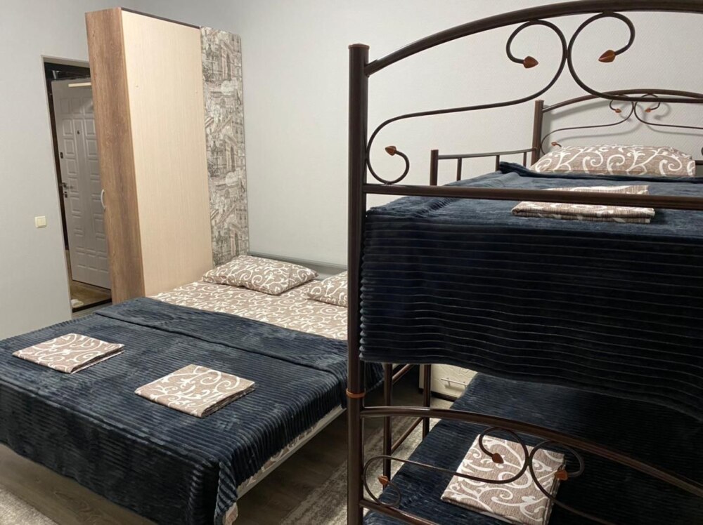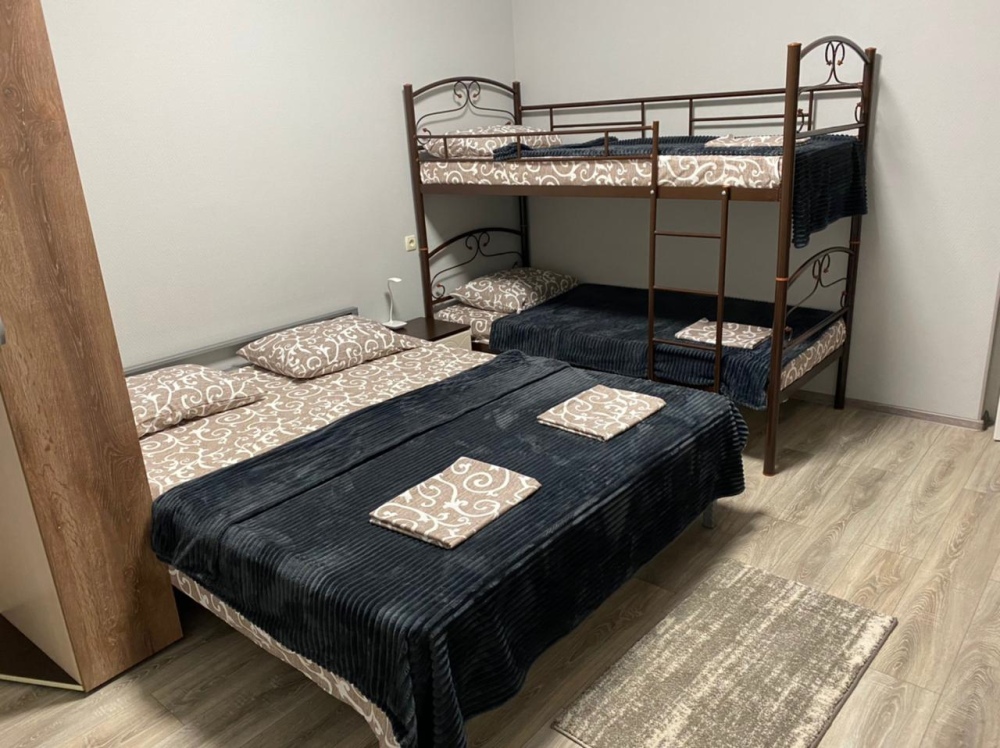 2 двуспальных кровати, 1 односпальная кровать, 1 диван-кровать, 1 двухъярусная кровать, детская кроватка (по запросу)
