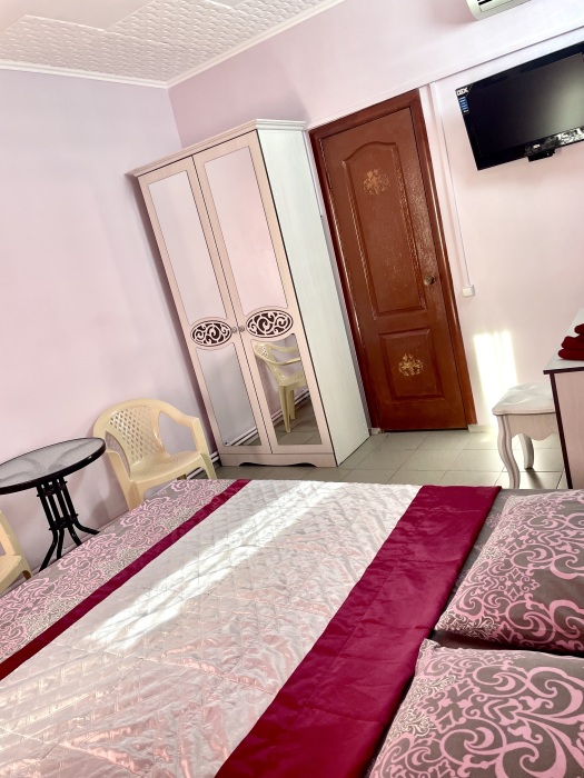Уютный номер, рассчитан на размещение 3 гостей. В номере есть все необходимое для комфортного проживания: удобная двуспальная кровать и евро-раскладушка, прикроватные тумбочки, шкаф для одежды, туалетный столик, С/У с душем.