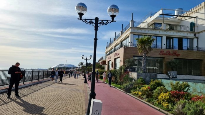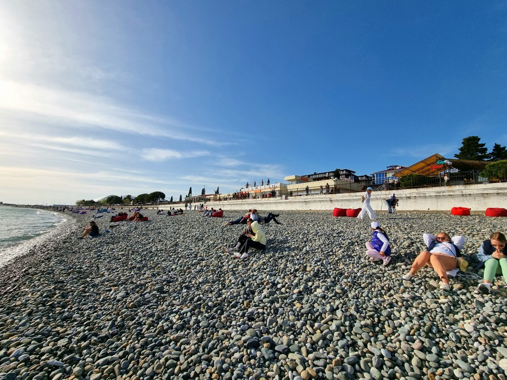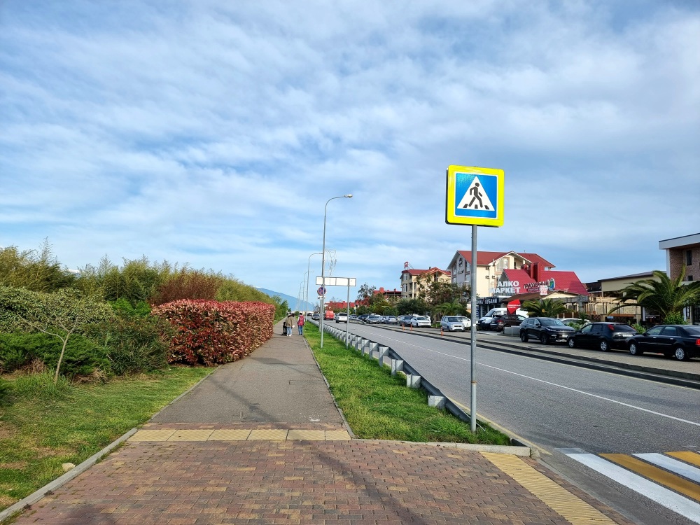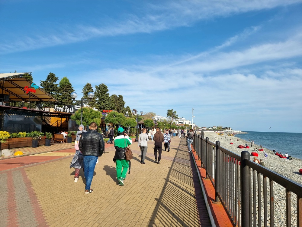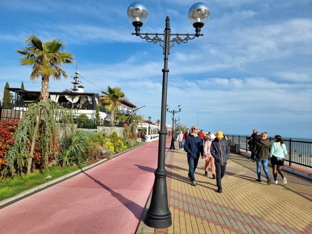 ПЕРВАЯ БЕРЕГОВАЯ ЛИНИЯ - 50 м от моря и набережной, протяжённостью 6,5 км, от Морского порта до Абхазии для пеших прогулок с выделенной вело и беговой дорожкой.