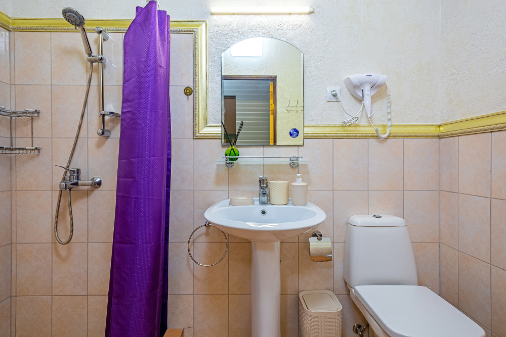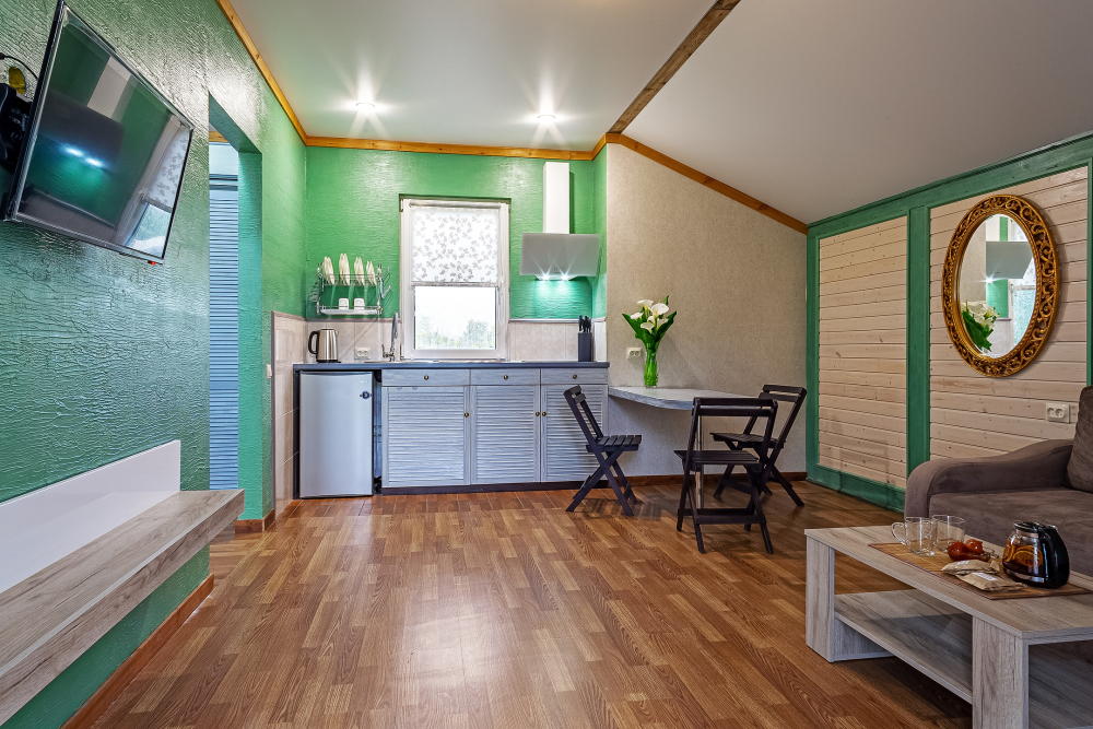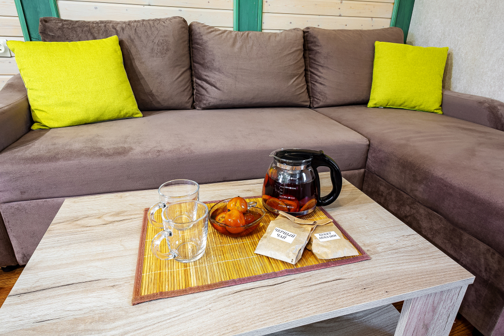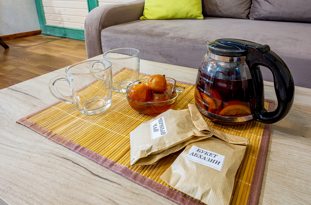 Современный интерьер и вкусное оформление помогают перезагрузиться после шумной городской суеты, сладкий десерт при заезде в виде мандаринового варенья и свежезаваренного чая избавит от переживаний и забот, и погрузит в гостеприимство владельцев, а русская баня на первом этаже дома даст вам почувствовать полное единение с собой и с природой.