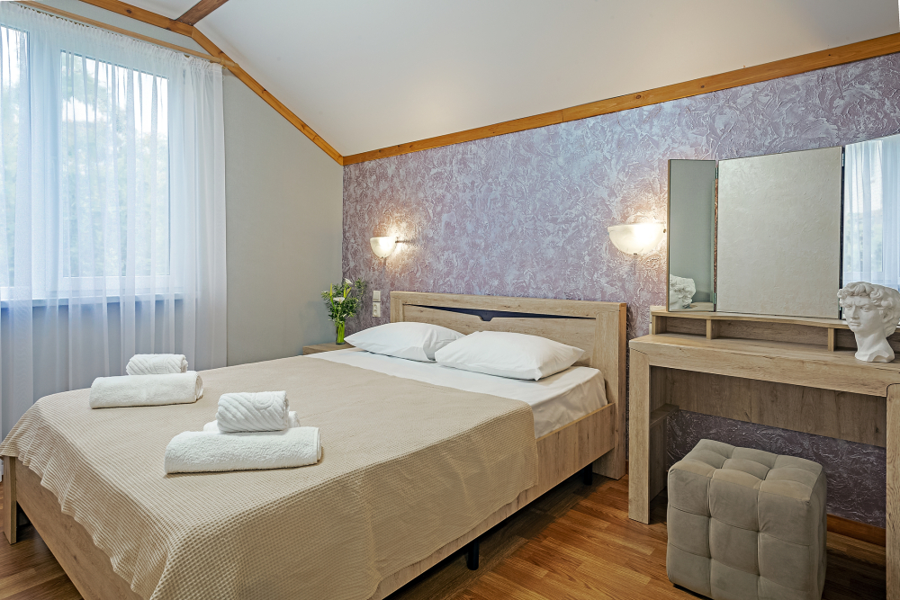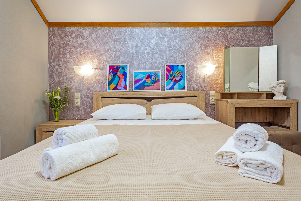 Убранство домашнего отеля мы декорировали с большим вкусом – здесь сочетание органического интерьера, современной мебели и текстиля создает совершенно уникальный стиль.