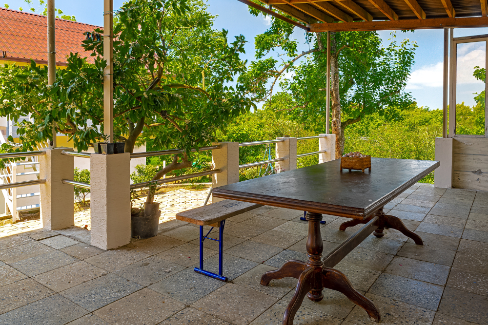 Расположенный в окружении плодоносящих деревьев и виноградников, наш домашний отель, а скорее даже загородный дом под ключ, представлен двухэтажным зданием в окружении вечно зеленых и цветущих растений, погружающим Вас в чудесные запахи сада и чистой природы.