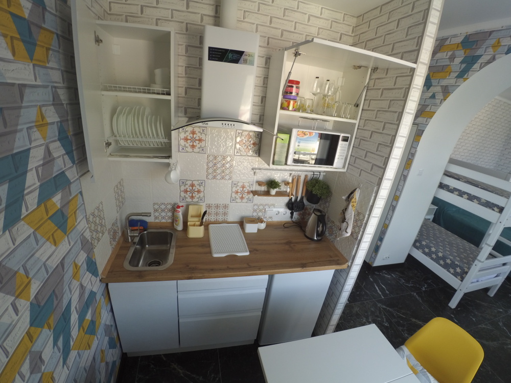 Но окнах есть жалюзи, можно огородится от нежелательных встреч и взглядов.