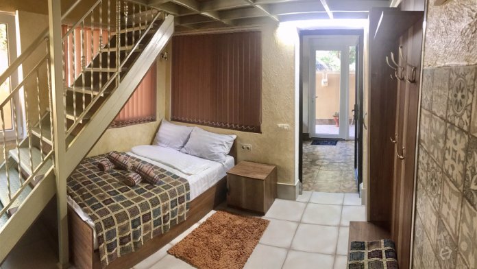 Эксклюзивный вариант проживания, расположенный в поселке Даниловка, рядом с санаторием «Ай-Даниль», оснащен кухней, душевой, двумя двуспальными кроватями, раскладным диваном и собственным внутренним двориком. Есть отдельный обеденный стол, также имеется уличный столик и мангал - проводите пикник на открытом солнце на территории, доступной только Вам. До моря 10 минут через благоустроенную территорию санатория, а пляж здесь тоже благоустроенный.