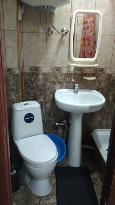 Санузел в номере, совмещенный, имеется водонагреватель. Вода постоянно.
