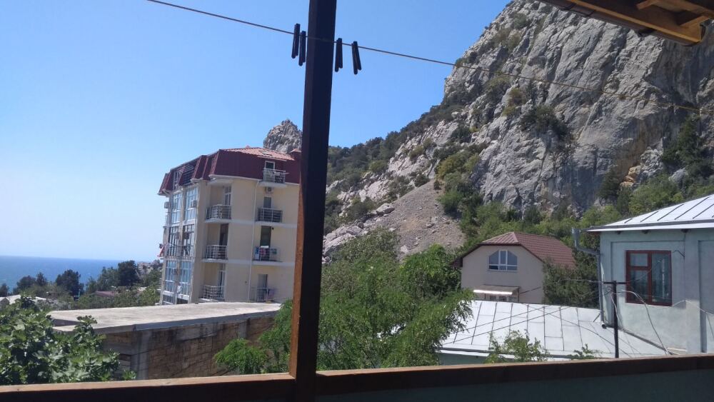 С южной стороны есть балкончик со столиком с которого открывается вид на море и гору Кошка.