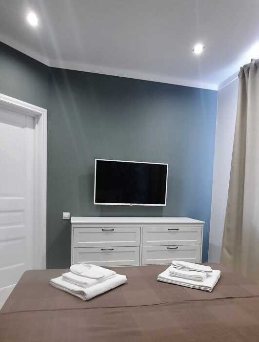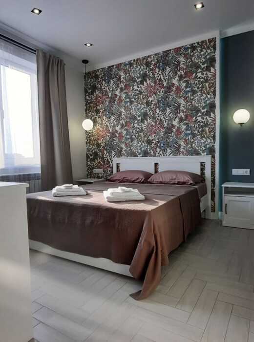 На каждом этаже 2-комнатные апартаменты оснащены всем необходимым для комфортного проживания: смарт ТВ, Wi-Fi, кондинционер, стиральная машина, варочная поверхность, мультиварка, микроволновая печь, холодильник, посудомоечная машина, электрический чайник, необходимая посуда.