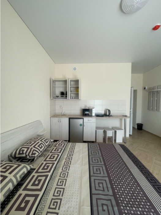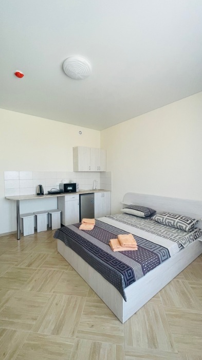 Гостям, для проживания, предлагаются уютные номера-студии со всем необходимым для комфортного отдыха. Во всех номерах есть кухня, оборудованная для самостоятельного приготовления пищи, холодильник, телевизор с плоским экраном,