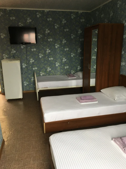 Все номера у нас с удобствами -душ, туалет в комнате, все туалетные принадлежности, кондиционер, телевизор и холодильники.