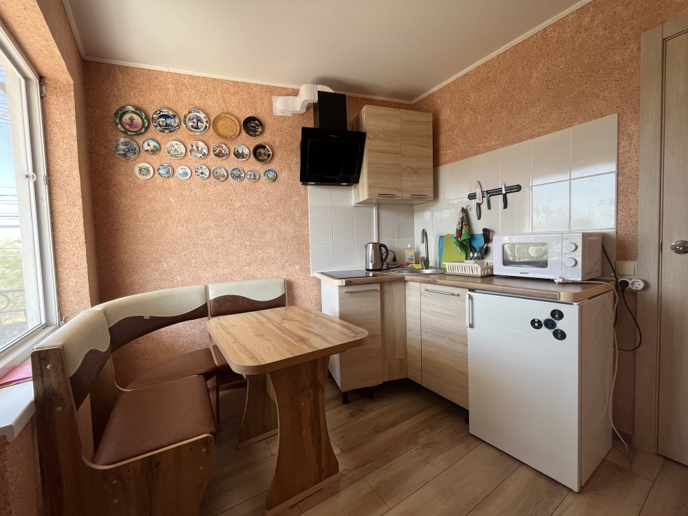 -Рядом отдельная кухня для самостоятельного приготовления пищи, укомплектованная всей необходимой утварью