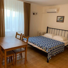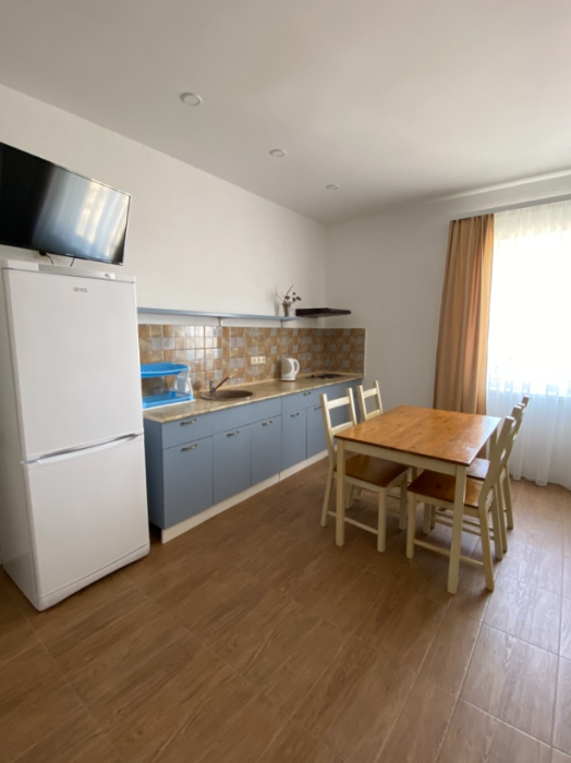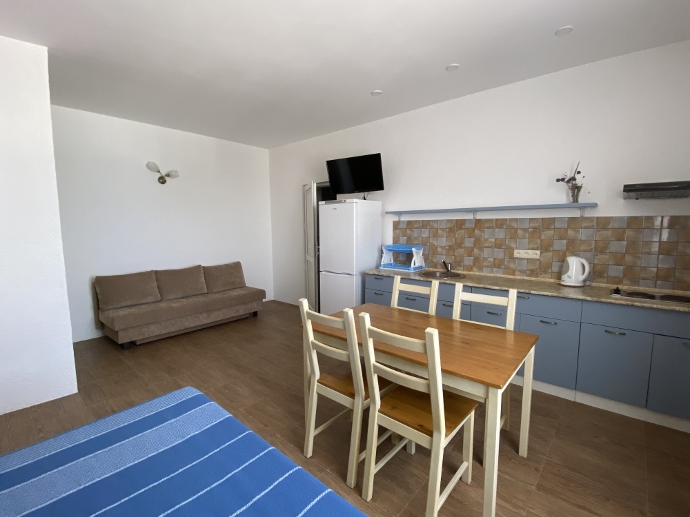Семейная с кухней оснащён всей необходимой посудой на 4-х человек. Удобная двухспальная кровать и диван на 2-х человек.