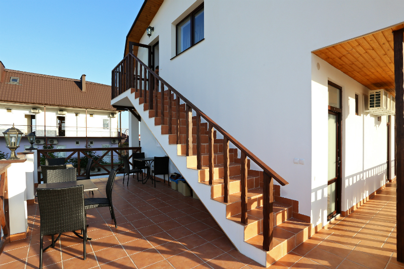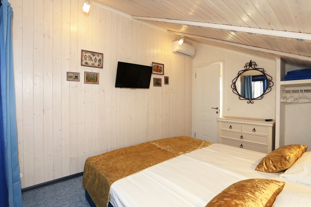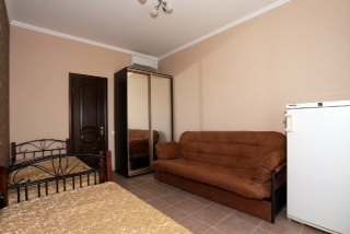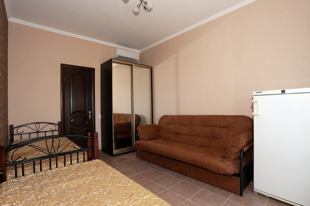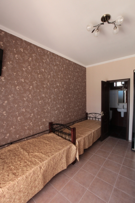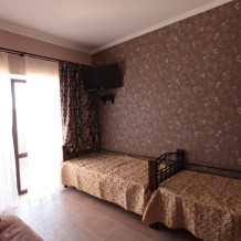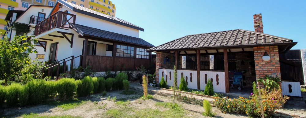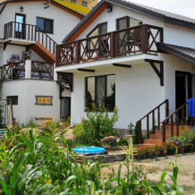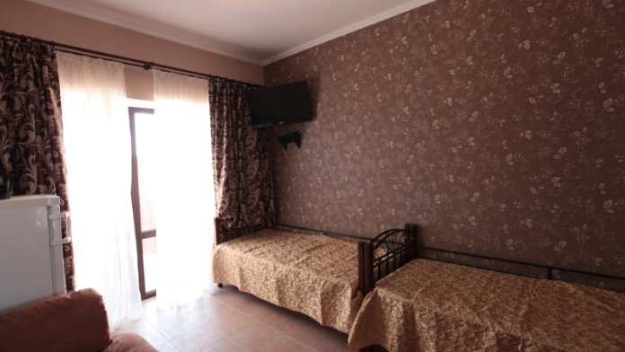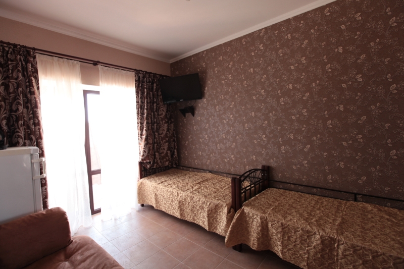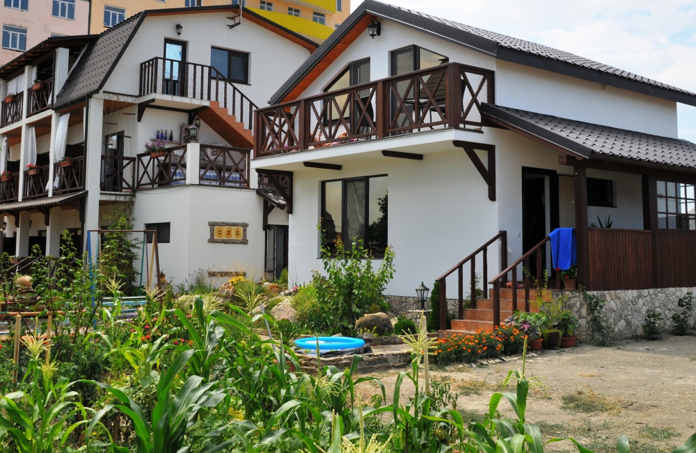 Дом построен в 2014 году. Номерной фонд -10 номеров и коттедж на 6 человек. В каждом номере есть балкон. Номера оснащены телевизором, холодильником, кондиционером, феном и эл.чайником. В гостевом доме есть общая кухня. До моря 15 минут ходьбы пешком.