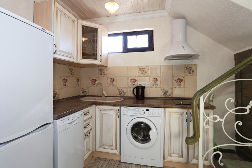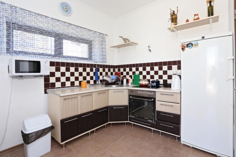Сдается под ключ на 5-6 человек. На втором этаже 2 спальни с балконами и санузел. В каждой комнате телевизор. На первом этаже кухня-гостинная и санузел. Кухня оборудована посудой, посудомоечной машинкой, стиральной машинкой, СВЧ-печь, холодильником, эл.чайником. Также есть еще 2 дивана, кондиционер, телевизор. Перед входом в коттедж терраса для отдыха.