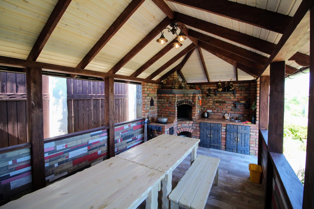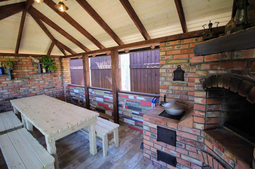 В номере: набор посуды, кровати с ортопедическими матрацами, терраса со столом и стульями, где можно поесть и отдохнуть. Рядом с номером детская площадка.