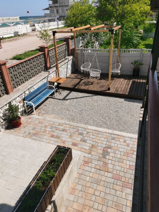 Своя территория, оборудована мангальной зоной, беседкой, садовой мебелью и шезлонгами.