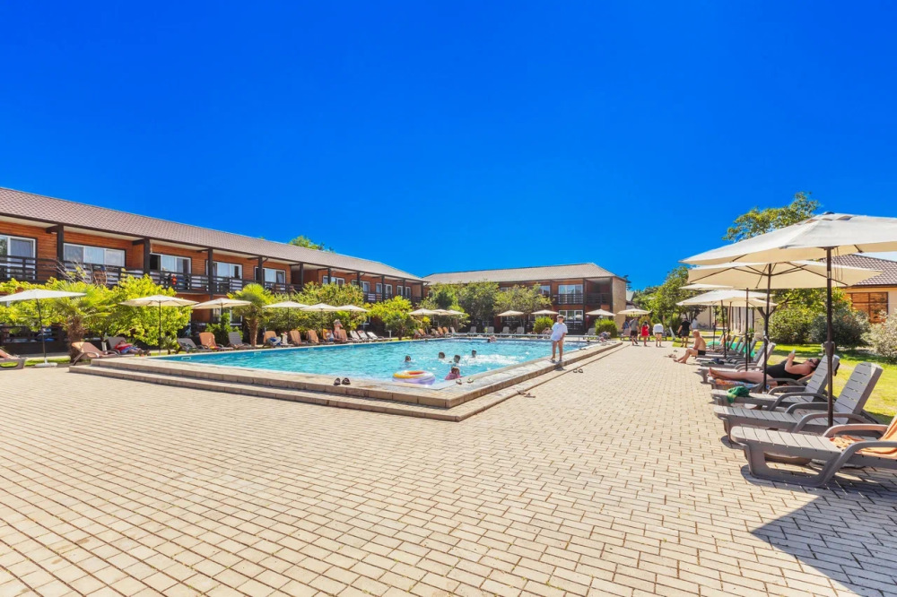 Жемчужина отеля - один из самых больших бассейнов в Абхазии с детским отсеком. Открытый подогреваемый бассейн в отеле работает в период с мая по начало октября. Рядом располагается зона отдыха, шезлонги предоставляются гостям бесплатно. Семьи с маленькими детьми оценят детский отсек бассейна с безопасной глубиной. Рядом с бассейном находится бар, где можно заказать прохладительные напитки и перекусить по приятным ценам.